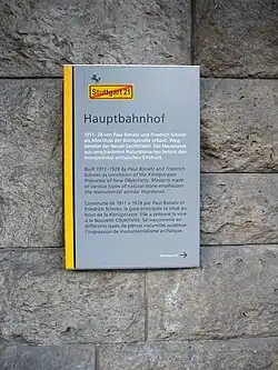 Architekten Paul Bonatz, Friedrich Eugen Scholer (Kopfbahnhof von 1922), Christoph Ingenhoven (neuer Durchgangsbahnhof)