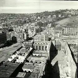 Luftbild des alten Hauptbahnhofs (rechts), neuer Bahnhof in Bau (Mitte), September 1917
