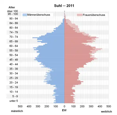 - ↑ Datenbank Zensus 2011, Suhl, Alter + Geschlecht