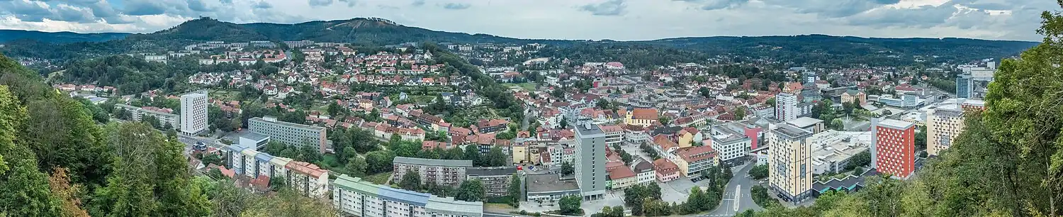 Suhl war über die Jahrhunderte eine vom Bergbau geprägte Stadt. Im Jahr 1952 wurde sie Bezirksstadt des Bezirkes Suhl. Es folgte der Beschluss, die Stadt umzugestalten und zu vergrößern. Beim Umbauprozess wurde umfangreich alte Bausubstanz in der Innenstadt abgerissen und durch moderne, von der Plattenbauweise geprägte Architektur ersetzt. So wuchs Suhl innerhalb weniger Jahre von etwa 25.000 Einwohnern auf über 56.000 an. Seit 1990 verzeichnete die kreisfreie Stadt allerdings mit knapp 40 Prozent den mit Abstand größten Bevölkerungsrückgang unter allen Landkreisen und kreisfreien Städten Deutschlands.[2]