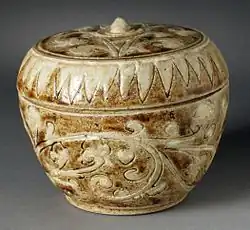 Nur in Si Satchanalai produzierte, von honigfarben über mittel- bis dunkelbraun ausfallende Keramik. Die Dekoration besteht aus eingeritzten, horizontal verlaufenden Bändern. Die Produktpalette setzt sich aus kugelförmigen Flaschen mit zwei Henkeln, kürbisförmigen Vasen, Vorratskrügen, bauchigen Krügen und figürlichen Darstellungen zusammen.[5]