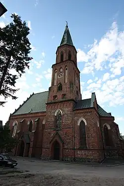 • Die Stanisław-Kostka-Kirche, ein neugotischer Backsteinbau, wurde 1905 als evangelische Kirche errichtet und ist seit 1945 katholisch