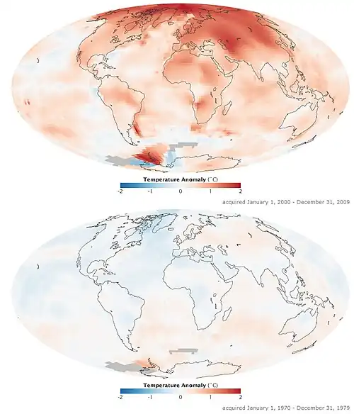 - ↑ ‘Noughties’ confirmed as the warmest decade on record. ( vom 15. August 2010 im Internet Archive) UK MetOffice, 7. Dezember 2009