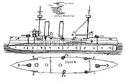 - ↑ Chesneau, Roger / Kolesnik, Eugene M. (Hrsg.): Conway's All The World's Fighting Ships 1860–1905. Conway Maritime Press. New York 1979, S. 223.