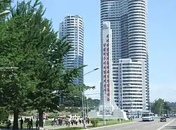 - ↑ Philipp Meuser (Hrsg.): Architekturführer Pjöngjang. Band 1: Fotos und Beschreibungen. DOM publishers, Berlin 2011, ISBN 978-3-86922-126-7, S. 40.