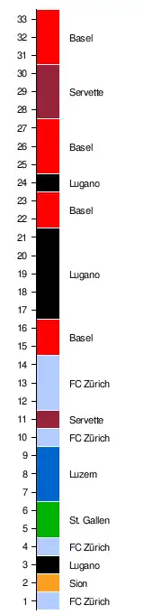 | 1. | FC Basel | 38 | 22 | 7 | 9 | 91:43 | +48 | 73 |