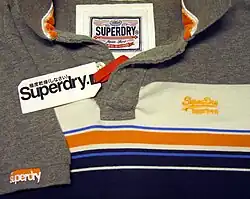 Die Superdry Plc ist eine britische Textilhandelskette. Bis 8. Januar 2018 hieß das Unternehmen SuperGroup plc.[2] Das Unternehmen ist an der London Stock Exchange börsennotiert. Die vormalige SuperGroup bestand aus drei Marken: Superdry, 77Breed (Skater-Bekleidung) und SurfCo alifornia (Wellenreiten). Das Markenzeichen der Superdry-Produkte ist die Kombination aus dekorativ eingesetzten japanischen Schriftzeichen (dem „Gegenstück“ zu Engrish) und dem Americana- bzw. Vintage-Look zu sowohl Streetwear als auch Preppy-Mode.