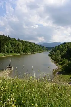 - Lußgraben, von links auf 469 m ü. NN gegenüber Oberstarz und vor dem Surspeicher, ca. 1,6 km.