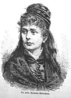 Susanna Rubinstein war eine Tochter des Bankiers Isak Rubinstein (ca. 1804–1878)[1], dem ersten aus der Bukowina stammenden jüdischen Reichsratsabgeordneten und Präsidenten der Israelitischen Kultusgemeinde Czernowitz (1872–1877)[1]. Mütterlicherseits war sie frühzeitig verwaist. Wie ihre Geschwister wurde sie in ihrer Ausbildung sehr von ihrem Vater gefördert, der ihr zunächst einen privaten Unterricht ermöglichte. In ihrer Geburtsstadt konnte sie allerdings die Matura nicht absolvieren, da zum Zeitpunkt ihrer Jugend in Czernowitz noch kein Mädchengymnasium existierte. So dürfte sie Matura vor einer Kommission eines Knabengymnasiums in Cisleithanien abgelegt haben. Daraufhin wandte sie sich dem Studium der Psychologie und deutschen Literatur zu und bezog zu diesem Zweck zunächst zu Ostern 1870 die Prager Universität. Dort lernte sie Fritz Mauthner kennen, dessen Liebe sie nicht erwiderte. Mauthners Erstlingswerk Die große Revolution, ein Sonettenzyklus, trägt eine Widmung an sie. Drei Jahre später wechselte Rubinstein zur Leipziger und schließlich zur Wiener Universität. In Bern erwarb sie 1874 mit der Dissertation Die sensoriellen und sensitiven Sinne die Doktorwürde. Dies war der erste von der Universität Bern an eine Frau verliehene Doktortitel.[2][3]