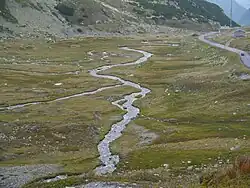 ![]() Mündung der Susasca in den Inn mit Blick gegen den Flüelapass | ||