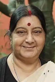 Sushma Swaraj (Hindi सुषमा स्वराज Suṣamā Svarāj, ; * 14. Februar 1952 in Ambala, Haryana; † 6. August 2019 in Neu-Delhi) war eine indische Politikerin (BJP). Sie bekleidete mehrfach Ministerämter in Haryana, war kurzzeitig Chief Ministerin von Delhi und über längere Jahre Abgeordnete in beiden Häusern des indischen Parlaments (Rajya Sabha und Lok Sabha). Von 2014 bis zum 30. Mai 2019 amtierte sie als Außenministerin Indiens.[1]