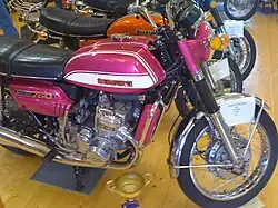 - GT 750 K: Doppelscheibenbremse vorn, Instrumente mit Metallgehäuse (statt Kunststoff), neues Tankdekor und Kühler-Seitenteil verchromt. (Farben: Pearl Blue, Candy Gold, Royal Red)
