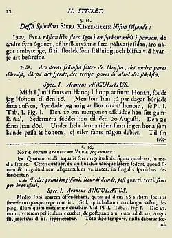 - ↑ In der damaligen schwedischen Schreibweise wurde das Wort Spindlar (= Spinnen) großgeschrieben.