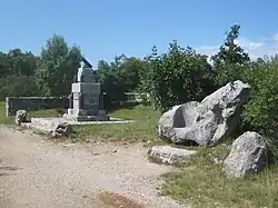 Kostanjevica na Krasu, Monument zu Ehren von Erzherzog Joseph August (links) und der sogenannte „Boroević-Thron“ (rechts)
