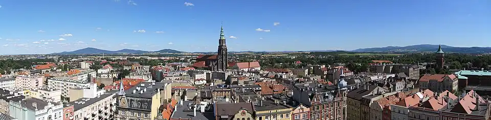 Świdnica (ɕfʲiˈdɲiʦa, deutsch Schweidnitz, schlesisch Schweinz, tschechisch Svídnice) ist eine Stadt in der Woiwodschaft Niederschlesien in Polen. Sie ist zugleich Verwaltungssitz der Landgemeinde Świdnica und des Powiat Świdnicki. Seit 2014 gehört Świdnica zum Ballungsraum Wałbrzych.[3]
