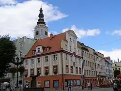 • Die Pfarrkirche Hl. Kreuz und Kreuzherrenkommende (Kościół Św. Krzyża i klasztor Krzyżowców) wurde 1718/19 an der Stelle des ehemaligen Hospitals errichtet und 1633 durch Brand zerstört. Nach einem Umbau ab 1865 im Stil des Klassizismus wurde sie 1868 eingeweiht.