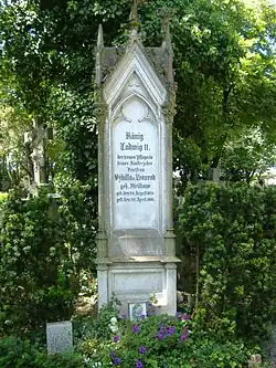 Nach dem Tod der Freifrau stiftete ihr König Ludwig II. ein neugotisches Grabmal aus Carrara-Marmor, auf dem Katholischen Hermanfriedhof in Augsburg. Der noch existierende Grabstein trägt die Inschrift: