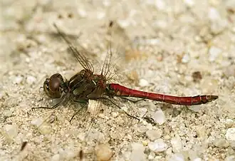 Frisch geschlüpfte Heidelibellen, deren Cuticula noch nicht vollständig ausgehärtet ist, sind hellbraun, können aber bereits flugfähig sein.