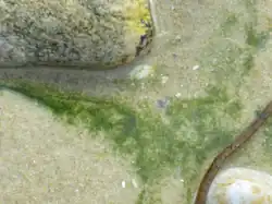 Sie lebt in flachen, sandigen, geschützten Buchten. Vor allem in Gezeitentümpeln kann sie so häufig sein, dass sie das Wasser grün färbt.
