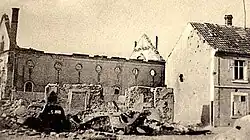 Während der deutschen Besatzung im Zweiten Weltkrieg wurden die Juden deportiert und die Synagoge ab 1940 dann als Lager genutzt. Bei einer Bombardierung des Ortes im Februar 1945 wurde das Synagogengebäude zerstört. Im Jahr 1950 wurde die Ruine abgebrochen.[1]