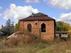 Heute ist das ungenutzte Synagogengebäude aus Ziegelmauerwerk dem Verfall preisgegeben.