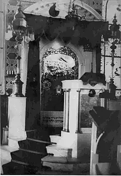 Die Gemeinde baute die Synagoge 1835 im Stil der Gründerzeit. Sie war dreischiffig,[1] ca. 30 Meter lang, 12 Meter breit, an den Seitenwänden 8 Meter hoch und besaß eine Gesamthöhe von 15 Metern. In dem Gebäude fanden 135 Gemeindemitglieder Platz. Nach der Erweiterung von 1910 verfügte sie über 320 Plätze für Männer, eine Empore für 250 Frauen und bestand fortan aus dem Hauptgebäude von 1836 sowie dem Erweiterungsbau, in dem ein Sitzungssaal, das rituelle Bad, Garderoben und eine Heizungsanlage Platz fanden. An der Ostseite des Gebäudes befand sich der Thoraschrein, davor die Kanzel und das Vorbeterpult. Im Zentrum des Gebäudes stand der Almemor, ein Pult, auf das die Tora bei der Lesung gelegt wird. Die Decke war nach eigenen Entwürfen im byzantinischen Stil gestaltet. Der Westgiebel war im griechischen Stil gehalten und mit einer hebräischen Inschrift in schwarzen Buchstaben auf weißem Grund verziert. Die Mitte des Giebels zierte ein großes Rundfenster mit dem Stern Davids, links und rechts schlossen zwei kleine Türme die Stirnseite des Gebäudes ab.[2]