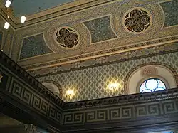 Die Synagoge wurde beim Umbau 1870 mit neoromanischen Stilelementen versehen. Das dahinter stehende Schulgebäude wurde zehn Jahre zuvor errichtet.