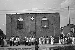 Die Synagoge im Stil des Barocks wurde von den deutschen Besatzern im Zweiten Weltkrieg verwüstet und nach dem Krieg als Ladengeschäft genutzt.