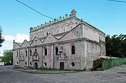 Die Synagoge im Stil der Spätrenaissance mit barockem Dekor wurde nach Plänen des Architekten Piotr Beber errichtet. Das Gebäude mit einem wehrhaften Charakter sollte der jüdischen Bevölkerung bei kriegerischen Bedrohungen Zuflucht bieten.