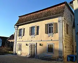 Bei der Synagoge handelt es sich um einen zweigeschossigen Bau aus Sandstein. Drei Fensterreihen unterstreichen die klassizistischen Merkmale des Massivbaus. Auf der Südseite rahmen zwei Pilaster mit toskanisierenden Kapitellen das Gebäude ein. Ein schlichtes Gurtgesims macht die Geschosse auch äußerlich erkennbar. Die Südseite wurde als Schauseite konzipiert und war als einzige verputzt und farbig gefasst. Das Gebäude unterschied sich kaum von anderen Höfen im Dorf.