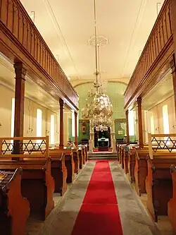 Das aus regionalem Buntsandstein errichtete Gebäude besitzt über dem Portal eine Rosette und schließt mit einem Dreiecksgiebel ab. Dieser wird auf beiden Seiten von Zwiebeltürmen überragt. Im Innern besteht die Wandbemalung aus floralen Motiven. Während der NS-Zeit wurde die Synagoge geplündert und teilweise zerstört. Nach einer Restaurierung im Jahr 1945 wurde das Gebäude wieder als Synagoge genutzt. Im Jahr 2008 wurde die Synagoge umfassend restauriert.[1]