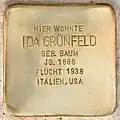 - Im November 2021 wurden in der Innenstadt von Güssing zehn Stolpersteine verlegt. Zwei davon vor dem Rathaus, in Erinnerung an den letzten Rabbi von Güssing, Jakob Grünfeld (1865–1947), und seine Frau Ida Grünfeld geb. Baum (1886–?). Beide lebten im Rabbinerhaus neben der Synagoge.[30][31]