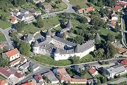 Lage im Bezug zu Schloss Kobersdorf. Die Synagoge liegt am linken Bildrand