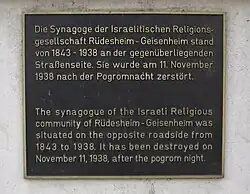 Dem Synagogenbezirk gehörten neben der jüdischen Gemeinde Rüdesheim auch die Juden in Geisenheim und Winkel an.