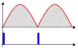 Die Welligkeit hat die doppelte Frequenz der Eingangsspannung; durch die halbierte Periodendauer verringert sich der nachfolgende Filteraufwand.