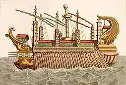 - ↑ Michael Lahanas: The Syracusia Ship. In: hellenicaworld.com. Abgerufen am 15. Oktober 2024.