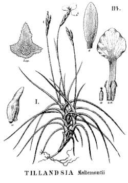- ↑ a b c d e Michael H. J. Barfuss, Walter Till, Elton J. C. Leme, Juan P. Pinzón, José M. Manzanares, Heidemarie Halbritter, Rosabelle Samuel, Greg K. Brown: Taxonomic revision of Bromeliaceae subfam. Tillandsioideae based on a multi-locus DNA sequence phylogeny and morphology. In: Phytotaxa, Volume 279, Issue 1, Oktober 2016, S. 001–097. doi:10.11646/phytotaxa.279.1.1