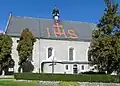 - Die Wehrmauer aus dem 15. Jahrhundert enthält im Süden ein gotisches Torgebäude mit spitzbogigem Durchgang. Der Tor- und Glockenturm in der westlichen Mauer ist von 1682. In der Ostwand befindet sich ein gotischer Wimperg mit Christuskopf.