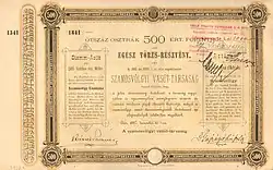- ↑ 500-Gulden-Aktie von 1880 auf Commons