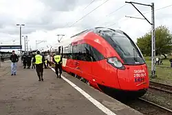 Eingesetzt werden Neubau-Triebwagen der Baureihen 27WE („Elf“) von PESA, 19WE und 35WE („Impuls“) des Herstellers Newag sowie aus EN57 umgebaute Fahrzeuge, die als Baureihe 14WE eingereiht sind.