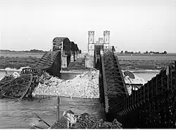 Die von Polen gesprengte Weichselbrücke Dirschau der Bahnstrecke Berlin – Königsberg