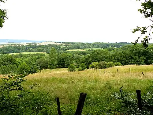 ![]() Blick vom Harz über das Naturschutzgebiet zum Kalkabbau bei Oker | ||