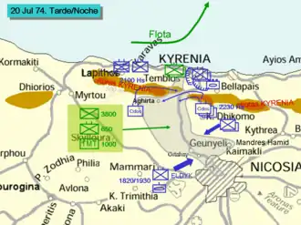Türkische Truppenbewegungen am Abend des 20. Juli 1974. | |||||||||||||||||