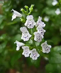 Der Blütenstand besteht aus Ährchen von 4 bis 10 mm Länge, die eiförmig, länglich oder prismaförmig sind. Sie sind sehr dicht und bilden am Ende der Stängel eine dichte Schirmrispe mit einem Durchmesser von 2 bis 8 (selten bis 10) cm. Die Tragblätter sind 3 bis 3,5 mm lang und stehen leicht über den Kelch hinaus. Die unteren Tragblätter sind eiförmig und spitz, die oberen sind kreisförmig-eiförmig, stumpf und kurz flaumig behaart. Der Kelch ist eiförmig-spatelförmig, 2,75 bis 3 mm lang, einlippig und weist auf einer Seite einen tiefen Schlitz auf. Er ist ganzrandig oder mit drei winzigen Zähnen besetzt, nahezu unbehaart, drüsig punktiert und bewimpert. Die Krone ist 4 bis 5,5 mm lang und weiß.