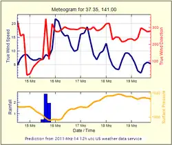 - ↑ ZAMG Ausbreitung der Wolke von Fukushima/permanente Freisetzung/Jod-131 (Animation Vorhersage Stand 20110315)