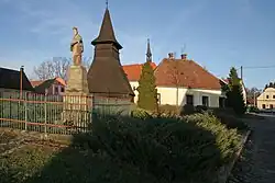 - Barocker hölzerner Glockenturm, südlich der Kirche. Die älteste der drei Glocken stammt von 1464 und wurde der Kirche durch Wilhelm von Duban gestiftet. Die große und kleine Glocke stammen von 1611, die Inschrift der großen Glocke lautet Jan Nason Landskronsky Farař Třebosicky.