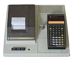 Ein TI-59 auf einem als Zubehör erhältlichen Thermodrucker PC-100C montiert
