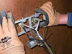 Die Prüfung erfolgt teil- oder vollmechanisiert, mittels eines Scanners werden beide Prüfköpfe entlang der Schweißnaht geführt und senden in fest vorgegebenen Abständen Ultraschallsignale in die Schweißnaht. Ein integrierter Inkrementalgeber erfasst den zurückgelegten Weg.