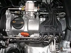 TSI (Abkürzung für Twincharged oder Turbocharged Stratified Injection) ist die Markenbezeichnung für aufgeladene Ottomotoren (Benzinmotor) beim Automobilkonzern Volkswagen. Das Ziel dieser Technik ist, Motoren mit kleinerem Hubraum, welche gegenüber Motoren mit größerem Hubraum einen Verbrauchsvorteil haben sollen, mit mehr Leistung und höherem Drehmoment zu versehen: Ein direkteinspritzender Ottomotor wird dabei mit einem Abgasturbolader oder zwei verschiedenen Ladern aufgeladen.[1][2] Der erste TSI-Motor war im Jahr 2005 ein doppelt aufgeladener 1,4-Liter-Motor. Im Mai 2015 wurde die neue Generation des sogenannten W12 als TSI vorgestellt.[3] Diese Motorentechnik wird bei Audi ausschließlich als TFSI (Abkürzung für Turbo Fuel Stratified Injection) bezeichnet. Das technische Äquivalent zum TSI beim Dieselmotor wird als TDI bezeichnet.