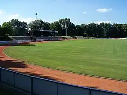 Neben dem Hauptspielfeld gibt es hinter der Tribüne zwei Nebenplätze und einen Kleinfeldplatz.